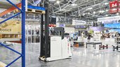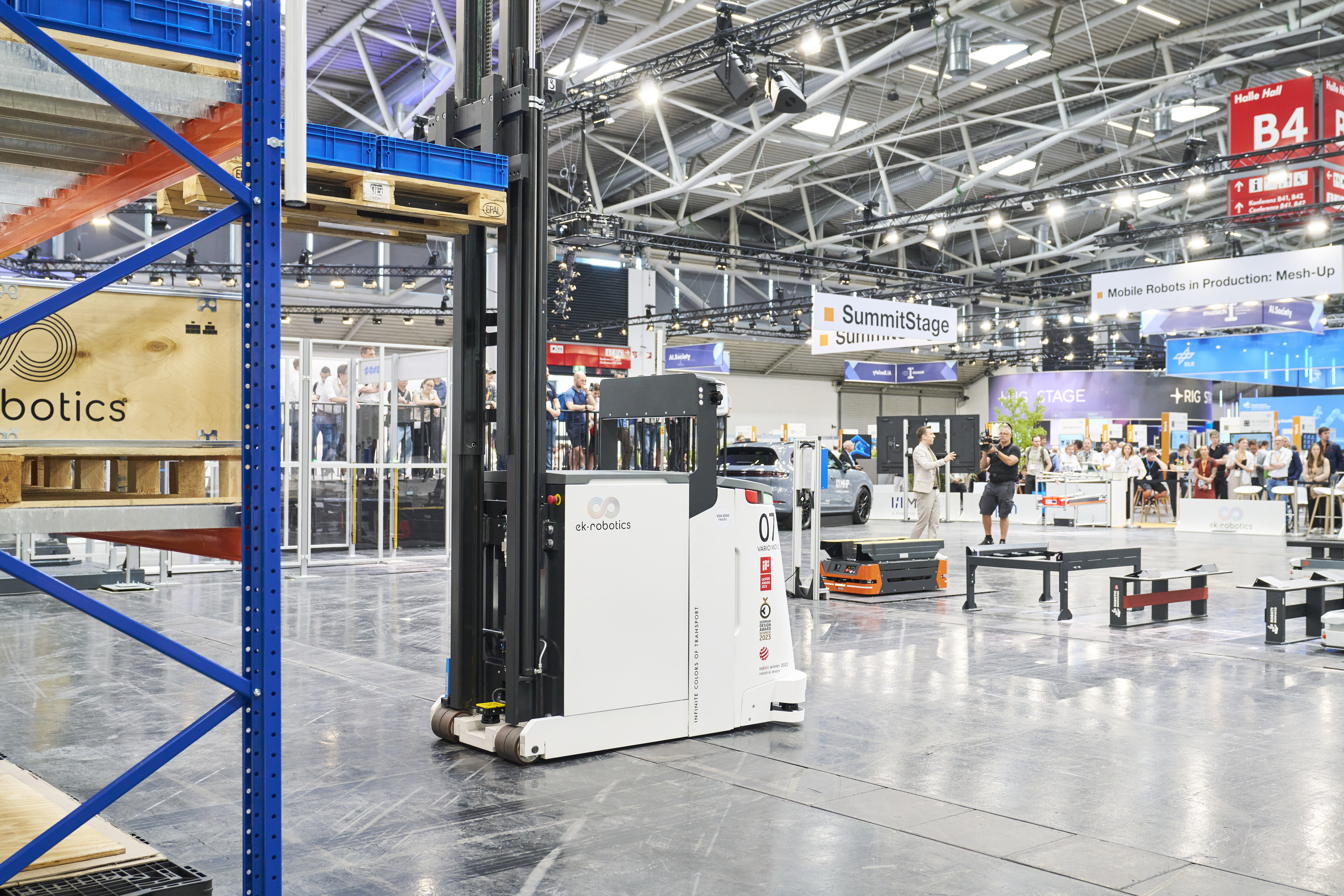 - Ein- und Auslagerung von Paletten durch einen vollautomatisierten Transportroboter mit Hubfunktion von ek robotics